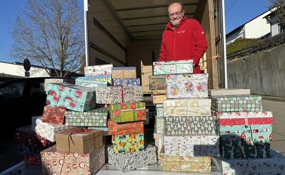 Die Weihnachtspäckchenaktion „Geschenk mit Herz“ macht auch in diesem Jahr wieder bedürftigen Kindern in Osteuropa eine ganz besondere Weihnachtsfreude. Dabei packen Menschen aus ganz Bayern Weihnachtsgeschenke entsprechend einer Packliste und geben diese bei einer Sammelstelle ganz in der Nähe ab. Dort werden die Päckchen dann von ehrenamtlichen Fahrern abgeholt und zu humedica nach Kaufbeuren gebracht. Anschließend geht es für die Geschenke schließlich per 40-Tonner in Länder wie Rumänien, Moldawien, die Ukraine oder Albanien. 2023 machte „Geschenk mit Herz“ auf diesem Wege mehr als 69.000 osteuropäischen Kindern eine Weihnachtsfreude.